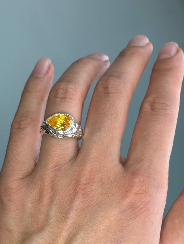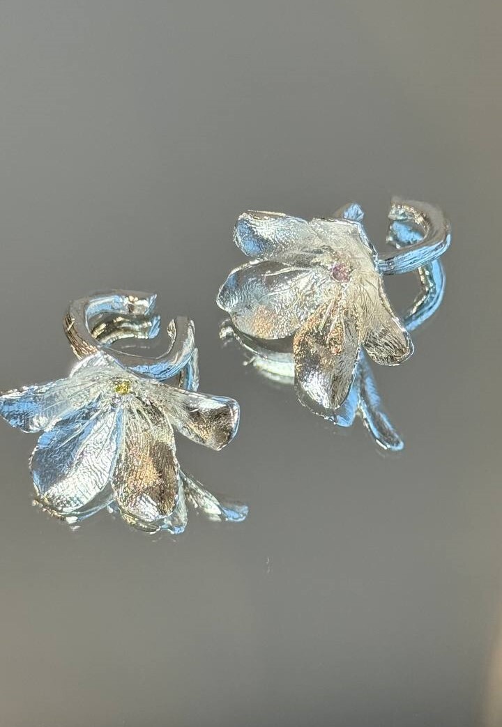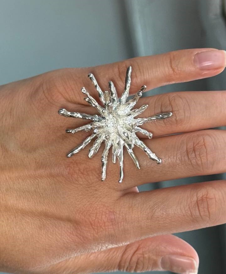 Мы ценим несовершенство формы натуральных камней и вдохновляемся рисунками природы, когда создаём текстуры на серебре и из него. Важная часть бренда – изделия, не требующие проколов.